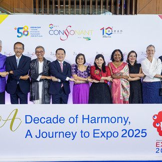 Our sincere gratitude to H.E. Mr. Masato Otaka, Ambassador of Japan to Thailand, for his kind wishes of encouragement on our journey to Expo 2025 Osaka. We were also honored to welcome H.E. Mrs. Millicent Cruz Paredes, Ambassador of the Republic of the Philippines, and H.E. Mr. Rachmat Budiman, Ambassador of the Republic of Indonesia, who graciously joined C asean Consonant on stage as guest singers. Their Excellencies’ presence and passion beautifully embodied the ASEAN spirit as One.